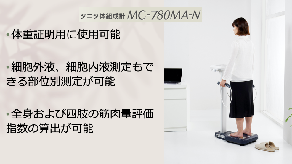 当院では豊富な研究実績に基づいた医療機器モデル、TANITA MC-780MA-Nを使用しています。