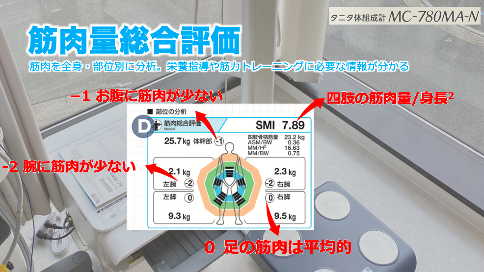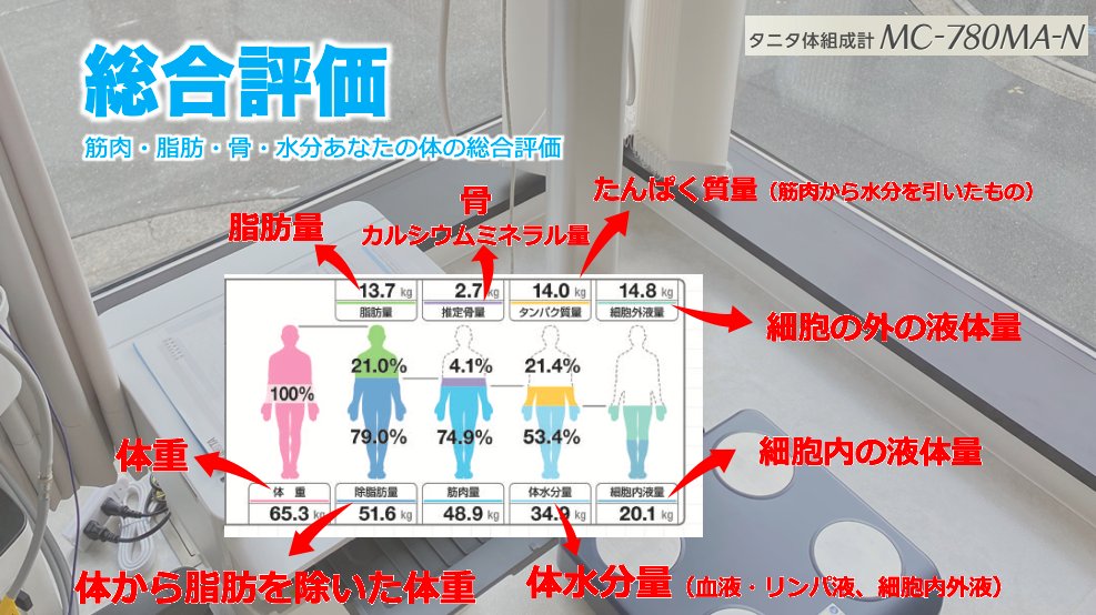 実際に、体組成計(TANITAMC-780MA-N)を用いてどんな測定ができるのか?どんな診断ができるのか?解説をいたします。