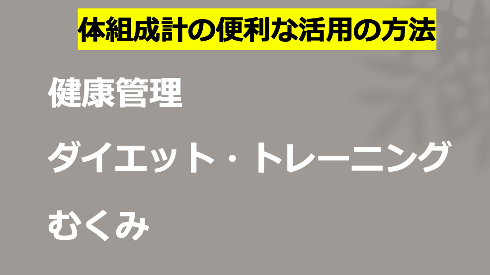 体組成計の便利な活用の方法は、健康管理、ダイエット(トレーニング)、そして、むくみの測定です。